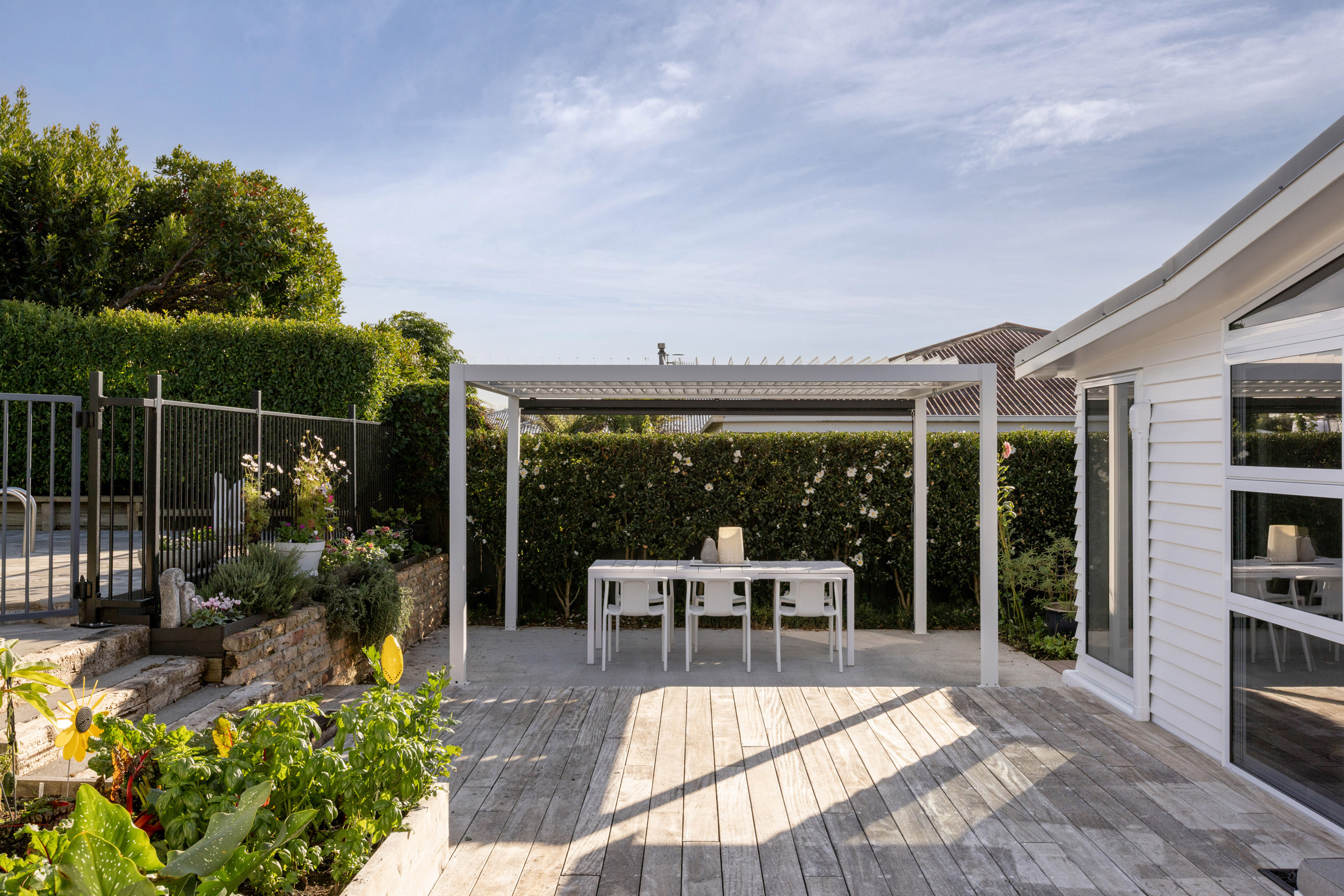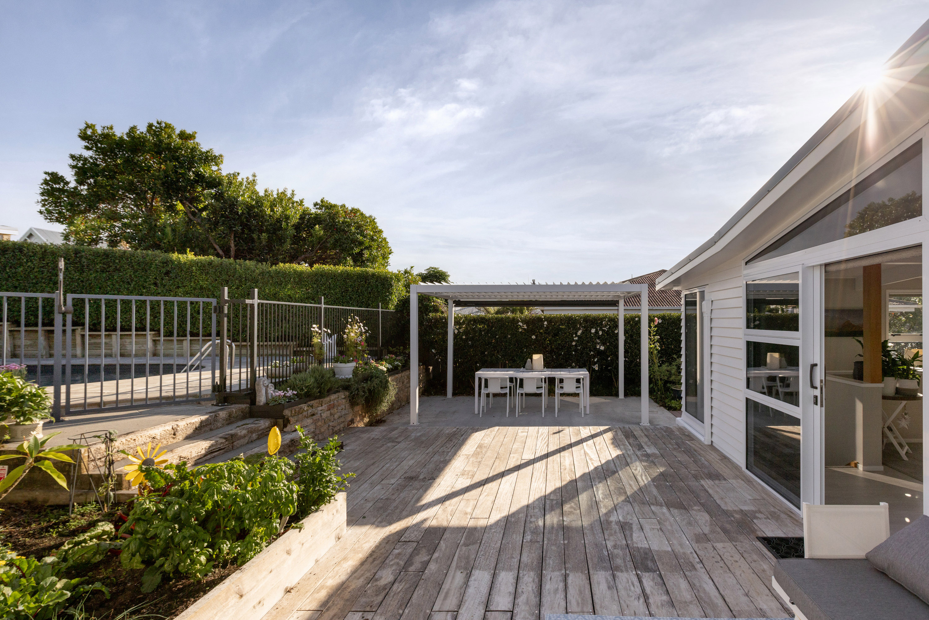 What truly sets this home apart is the way it lives outside. Landscaped grounds have been thoughtfully curated and beautifully maintained. From the elevated entertaining deck to the poolside setting, to the sheltered dining area beneath the louvres, every corner has been designed to be used and enjoyed.