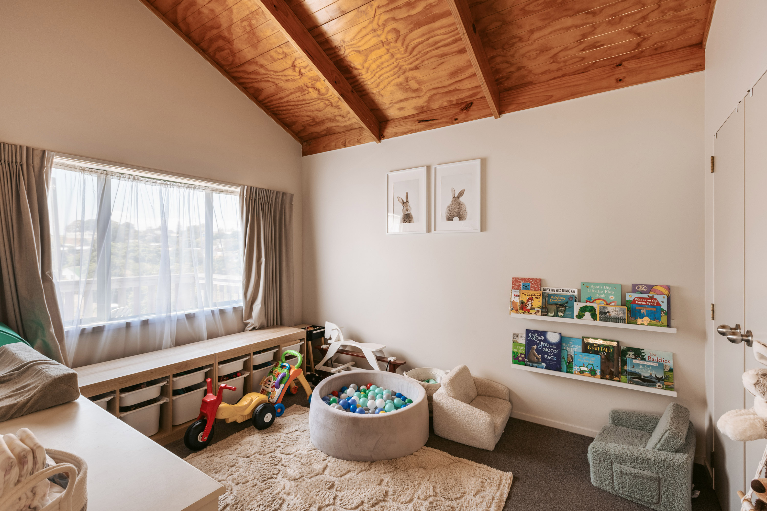 Downstairs features two double bedrooms, a welcoming foyer-style living area, and a full bathroom, ideal for extended family, guests, or teens wanting their own space. Upstairs, you’ll find two further double bedrooms alongside open-plan living, where the fourth bedroom is currently used as a second lounge or kids’ playroom, easily doubling as a media room if desired.