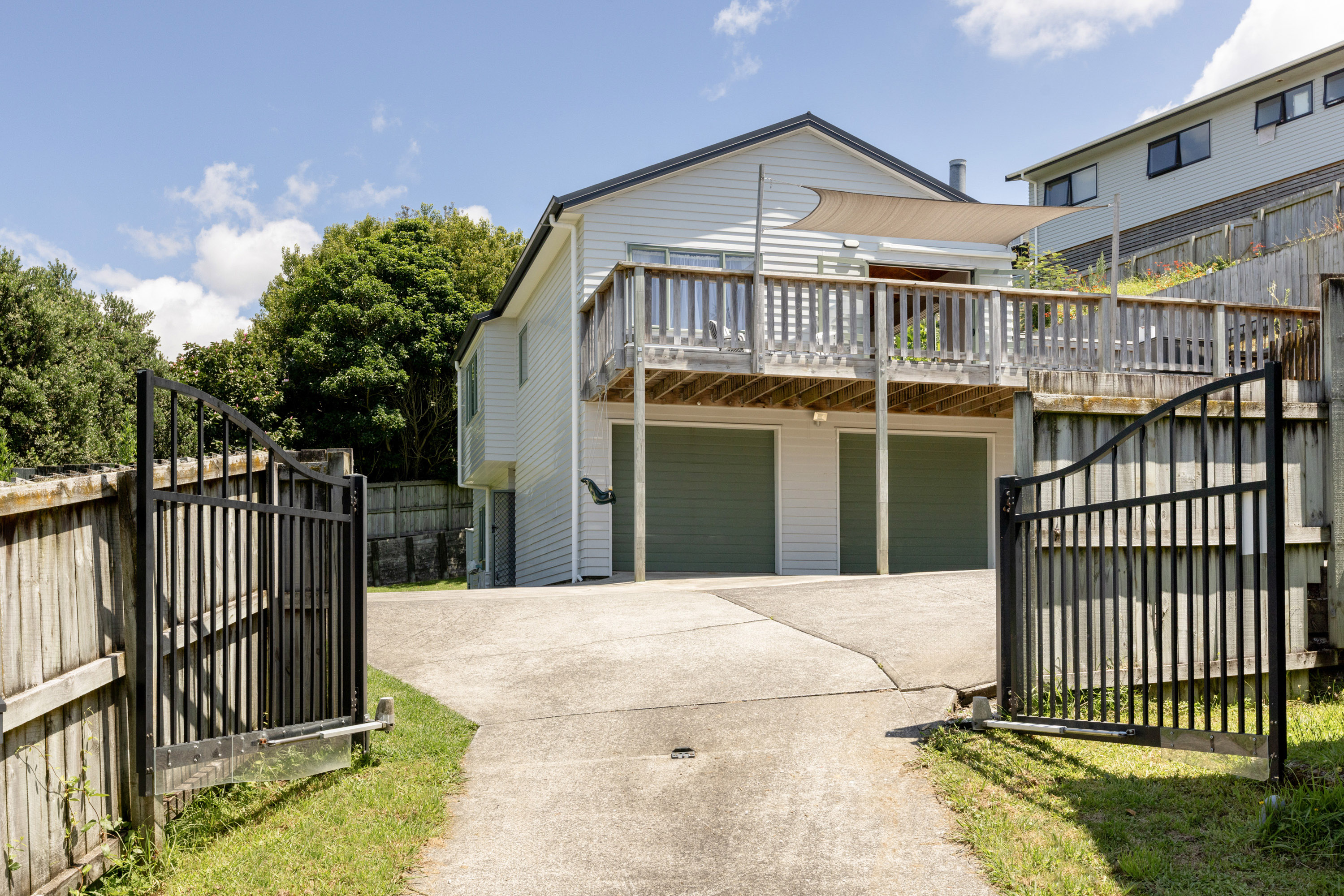 Set in a commanding, elevated position at the end of a right-of-way, the home enjoys all-day sun, privacy, and peace of mind behind its own automated electric gate.